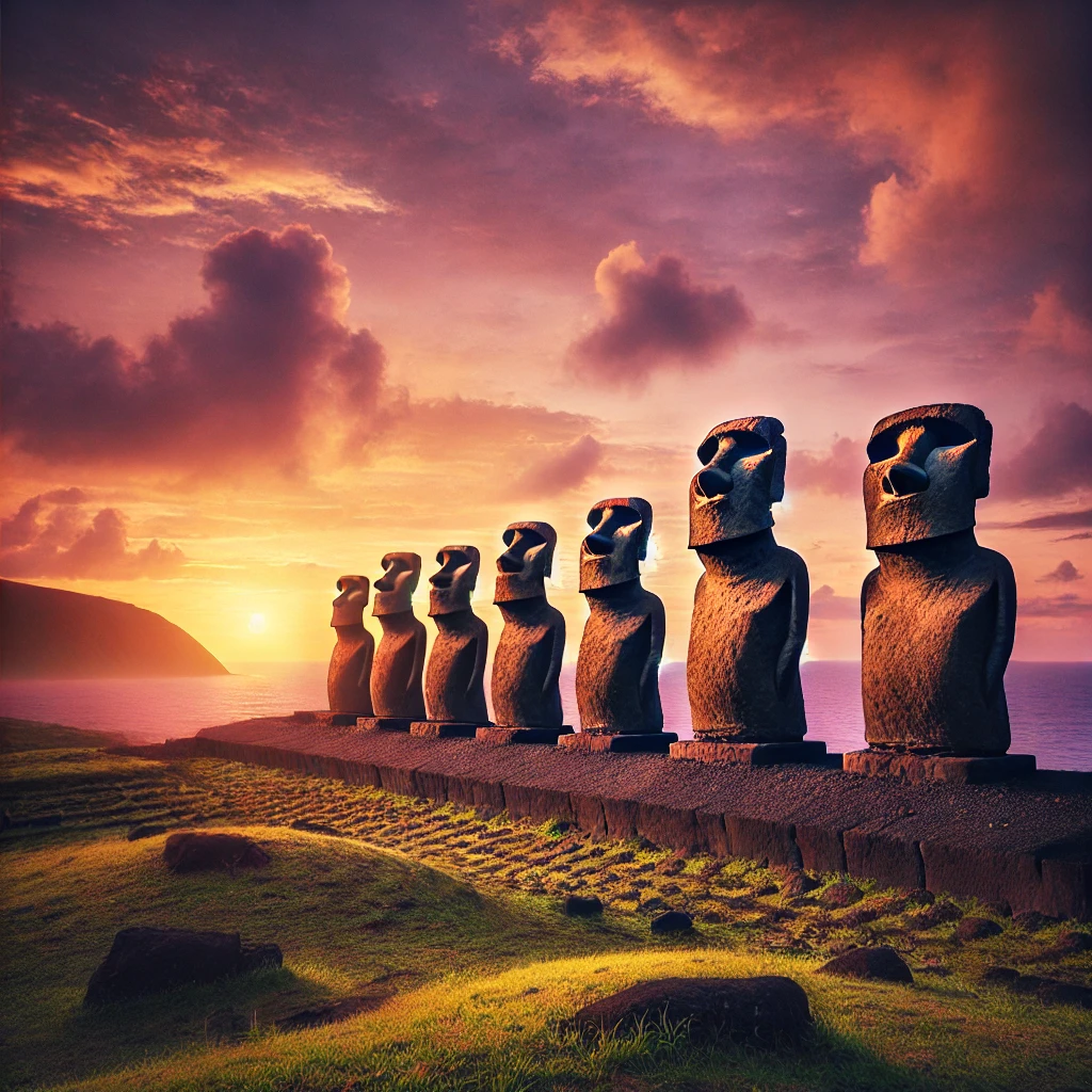 # 칠레 이스터 섬의 신비한 모아이 석상: 라파누이 문명에 의해 만들어진 거대한 돌머리는 어떻게 운반되었는지에 대한 의문을 담고 있습니다.