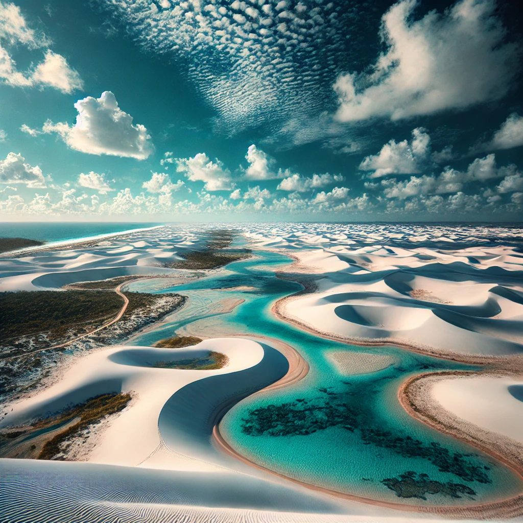렌소이스 마라넨세스 국립공원은 브라질 북동부 해안에 숨겨진 세계에서 가장 감동적이고 독특한 지역 중 하나입니다. 전통적인 모습과는 달리 상상할 수 없는 넓은 구불구불한 하얀 해변 더미는 폭풍우가 몰아치는 계절에 청록색 석호의 매혹적인 미로로 변해 초현실적인 낙원을 만들어냅니다. 마라냥 주에 위치한 이 자연경관은 독특한 여행 경험을 추구하는 사람들과 자연 어리바리들을 끌어들입니다. 광활한 더미를 하이킹하거나, 데미타스 맑은 기수 웅덩이에서 수영하거나, 살아나는 사막의 마법을 증명하고 싶다면 렌소이스 마라넨세스는 꼭 방문해야 할 여행지입니다.