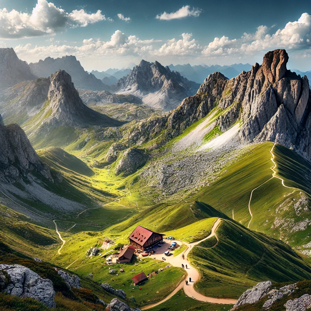 극적인 봉우리, 깊은 협곡, 매력적인 돌마을이 있는 숨겨진 산맥.